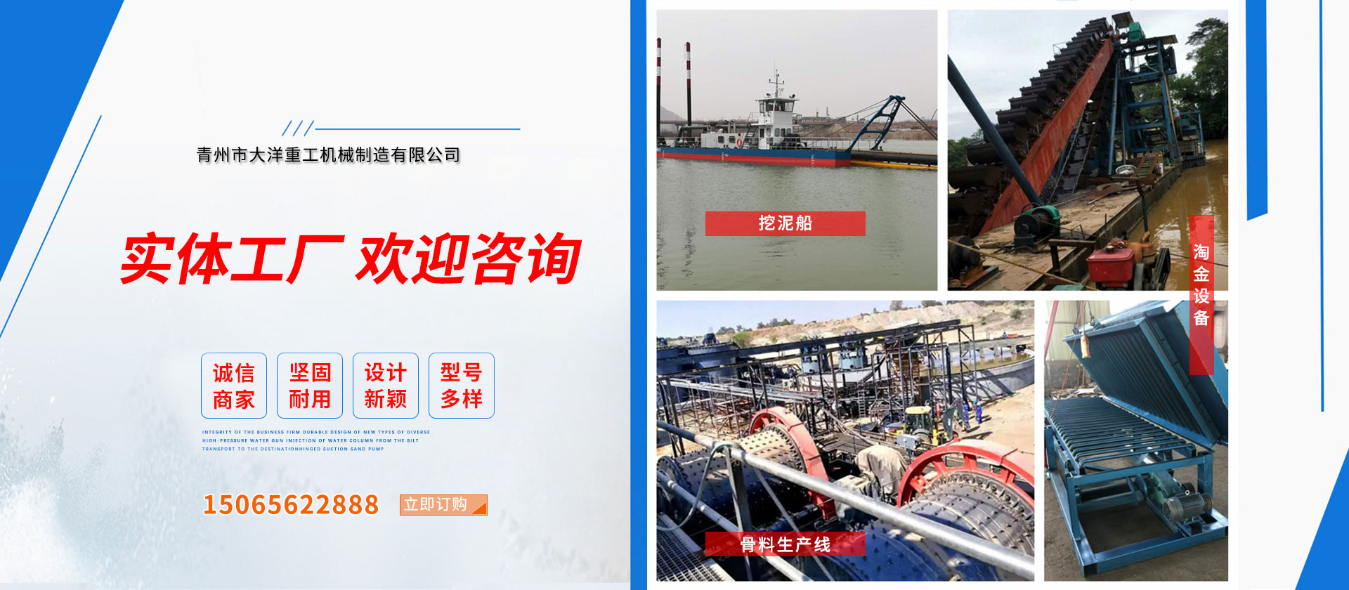 青州市大洋重工機(jī)械制造有限公司是生產(chǎn)淘金船、淘金設(shè)備、沙金機(jī)械、移動(dòng)式淘金選金車(chē)、沙金提取設(shè)備、巖金提取設(shè)備、金砂尾礦回收設(shè)備、淘金離心機(jī)、淘金搖床、淘金混貢機(jī)、熔金機(jī)、小型淘金船、寶石精選提取設(shè)備等裝備的生產(chǎn)廠(chǎng)家。公司自成立至今,已經(jīng)成為淘金設(shè)備行業(yè)集科研開(kāi)發(fā)、機(jī)械設(shè)計(jì)、生產(chǎn)安裝、調(diào)試服務(wù)為一體的生產(chǎn)廠(chǎng)家,其淘金色斑產(chǎn)量和銷(xiāo)售已居同行業(yè)前列。       并根據(jù)用戶(hù)的地理環(huán)境設(shè)計(jì)制造異型淘金設(shè)備產(chǎn)品!         公司秉承“誠(chéng)實(shí)經(jīng)營(yíng)”的企業(yè)經(jīng)營(yíng)理念,以“以德為本、誠(chéng)實(shí)負(fù)責(zé)、和諧發(fā)展”的企業(yè)精神,不斷堅(jiān)持以提高質(zhì)量求生存;以科技創(chuàng)新求發(fā)展;以強(qiáng)化管理求效益;以滿(mǎn)意服務(wù)求誠(chéng)信的思想,努力踐行“德行天下” 的公司宗旨。 ...